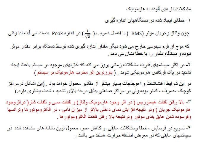 تلفات موتور در هنگام کار با منبع غیر سینوسی ( آلوده به هارمونیک)