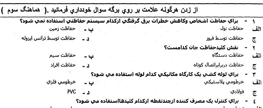 صفحه محصول - سوالات آزمون پایان دوره برقکارساختمان درجه 1 - 4 صفحه - pdf