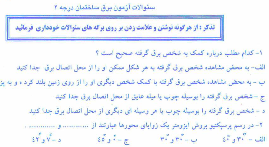 صفحه محصول - سوالات آزمون پایان دوره برقکارساختمان درجه 2 - سری اول - 24 صفحه - pdf