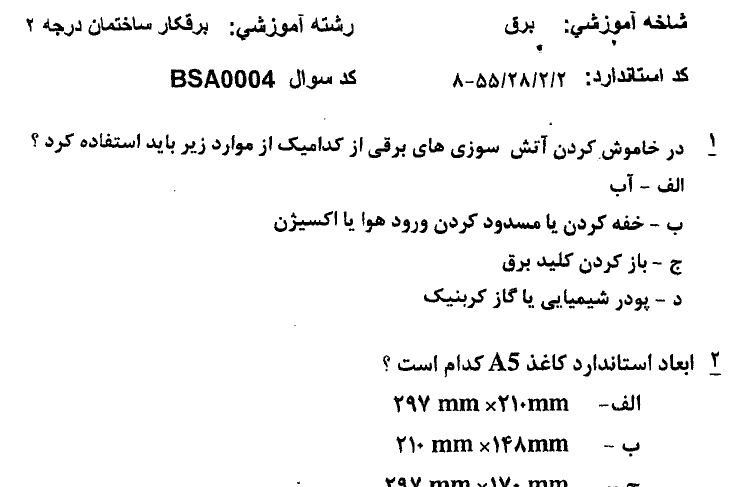 صفحه محصول - سوالات آزمون پایان دوره برقکارساختمان درجه 2 - سری دوم - 24 صفحه - pdf